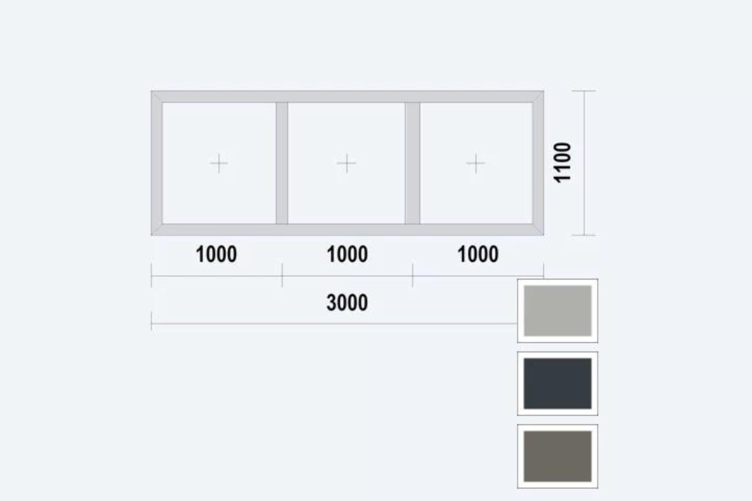De afmeting van dit kozijn is 3000x1100mm buitenwerks, en de opdek is 18mm. De binnenwerkse maat is hierdoor 2964x1064mm, en wij adviseren een sparingmaat van 2972x1072mm hiervoor aan te houden (4mm speling rondom).
